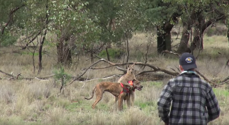 In journalism, it's said that "Dog Bites Man" will never be a headline, but "Man Bites Dog" could be. This video, courtesy of Outback Australia via ViralHog, begs for a headline far cleverer than your usual man-bites-dog. In it, a group that has gone out wild-boar hunting with dogs comes across something much more exotic: a buck kangaroo that is none too happy about the hounds on his turf. What happens next simply must be seen to be believed, and is without a doubt the most Australian thing you'll see this year. (Don't worry; the dog and the 'roo both make it through OK!) Click here to get 'Strayan.